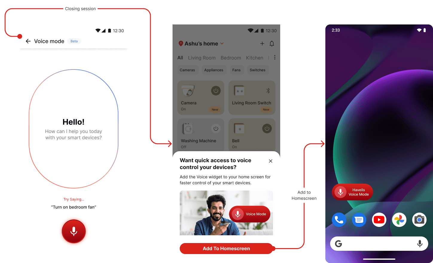 The brief for Voice Mode was to build an AI powered voice agent that feels native to the Havells One app, works with zero configuration, and speaks the way Indian households actually speak. No jumping between apps. No Alexa. No Google Home. No account linking. Just talk.