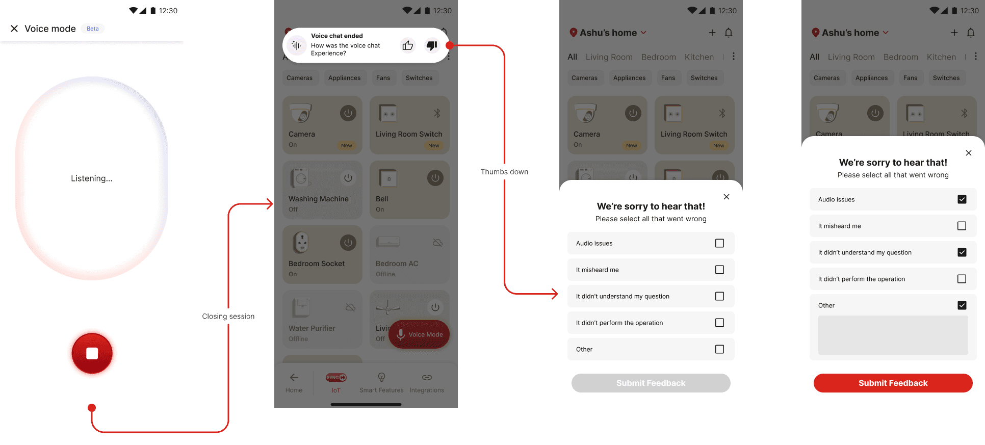 Before touching a single frame, we spent 2 weeks auditing how existing voice assistants behave in a smart home context. We looked at Alexa +, Google Home, LG, and a handful of regional players like Atomberg to understand where the experience falls apart for Indian users.