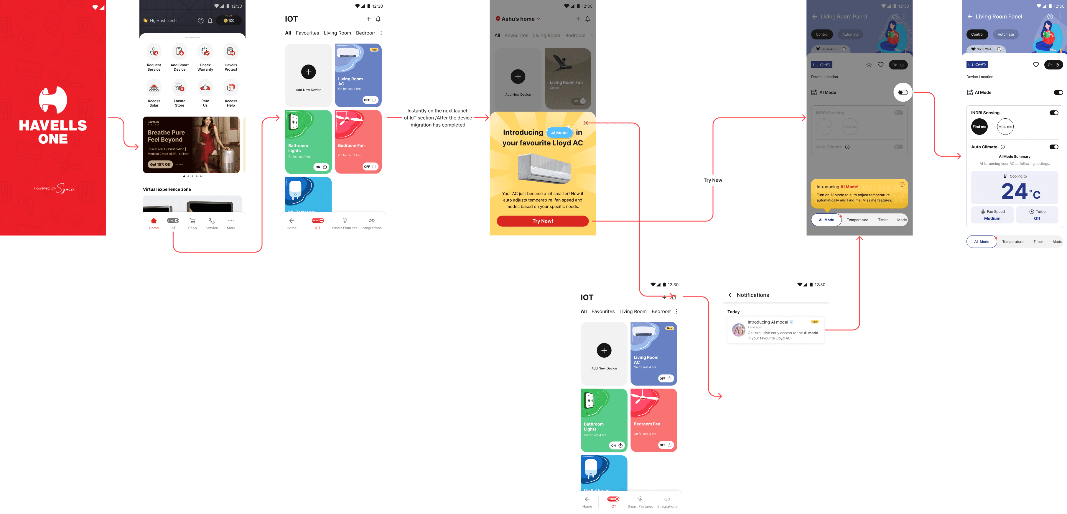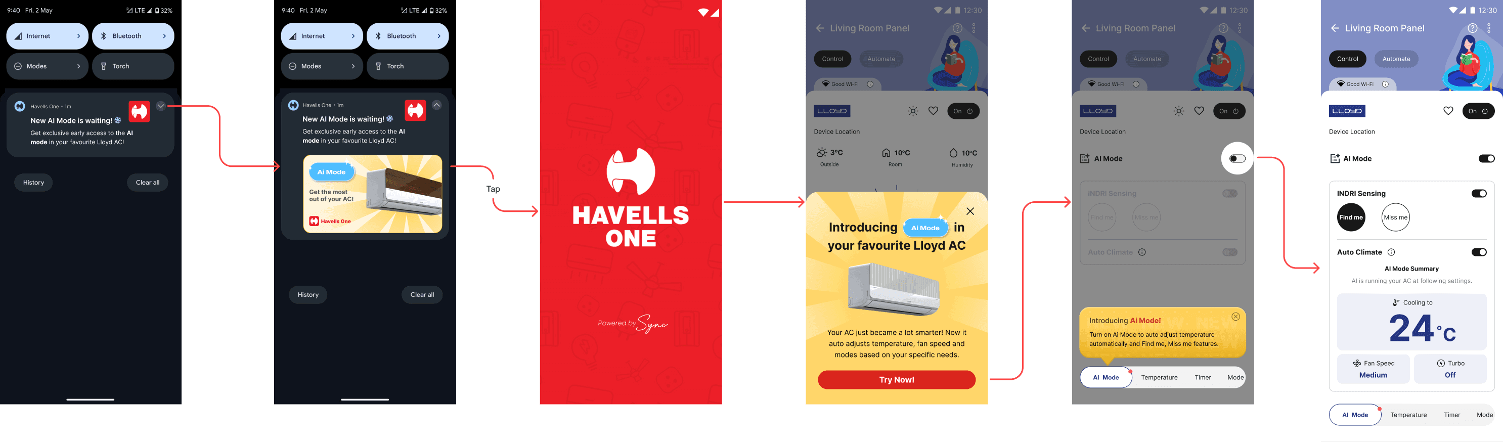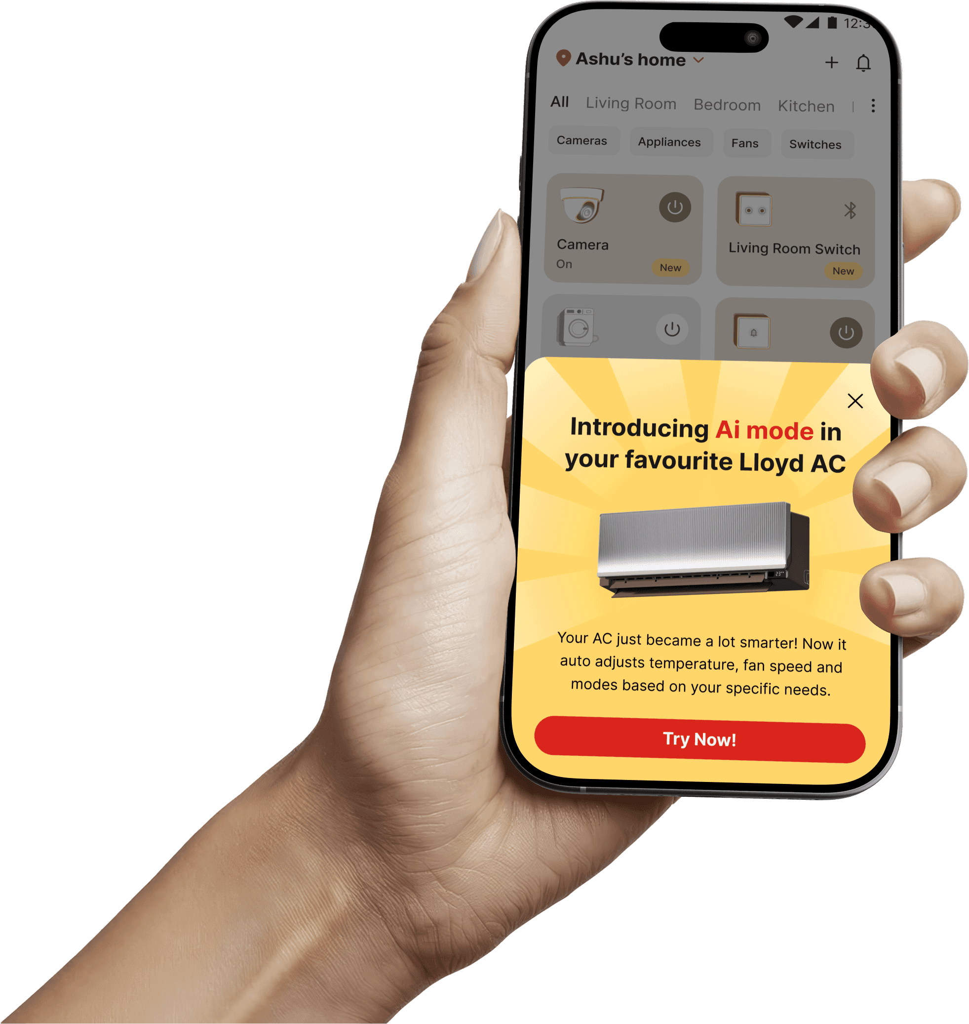 To improve awareness and adoption of new features, I introduced contextual nudges embedded within existing user flows. These nudges surface relevant features at the right moment, reducing the need for active exploration and aligning with user intent during routine tasks. This approach was applied to drive discovery of features like the ‘AI Mode’ in Lloyd ACs and the Buy AMC section, improving feature visibility while supporting business goals of increased adoption and utilization.