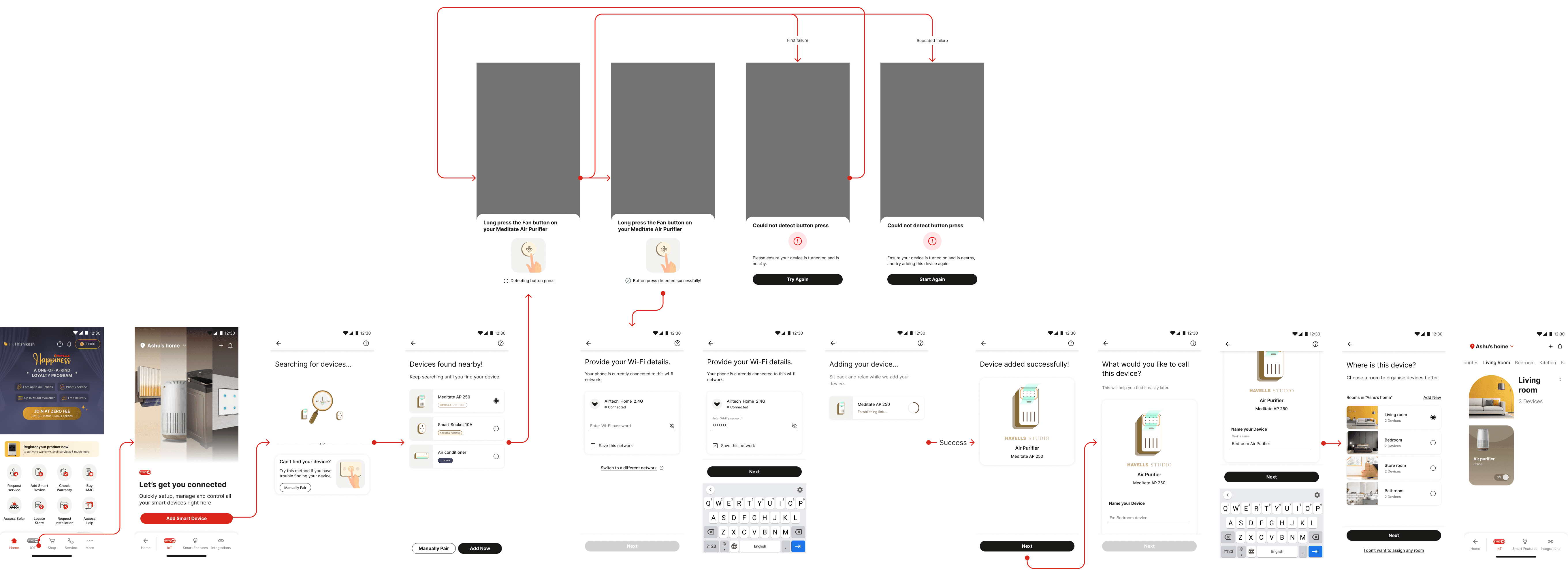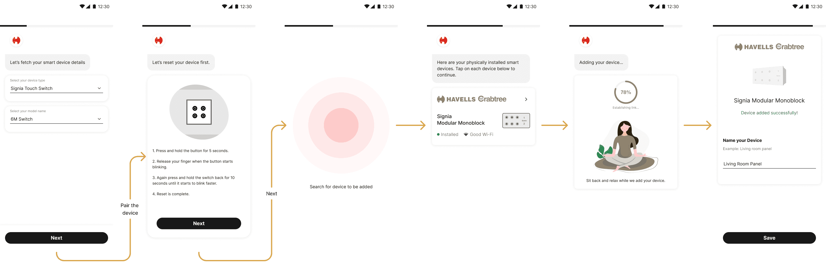 The revamped onboarding experience introduces a one-tap, BLE (Bluetooth Low energy)-powered device discovery flow that automatically detects nearby Havells devices and surfaces them instantly, eliminating the need for manual selection and complex setup steps. The system is designed to minimize friction by guiding users through a fast, intuitive flow with clear feedback at each stage, while also handling real-world scenarios through re-scan options and ownership verification.