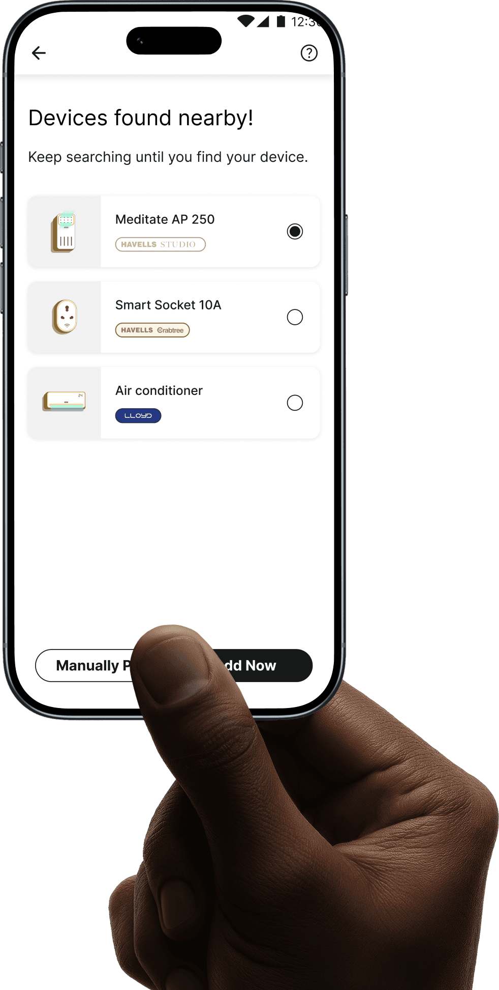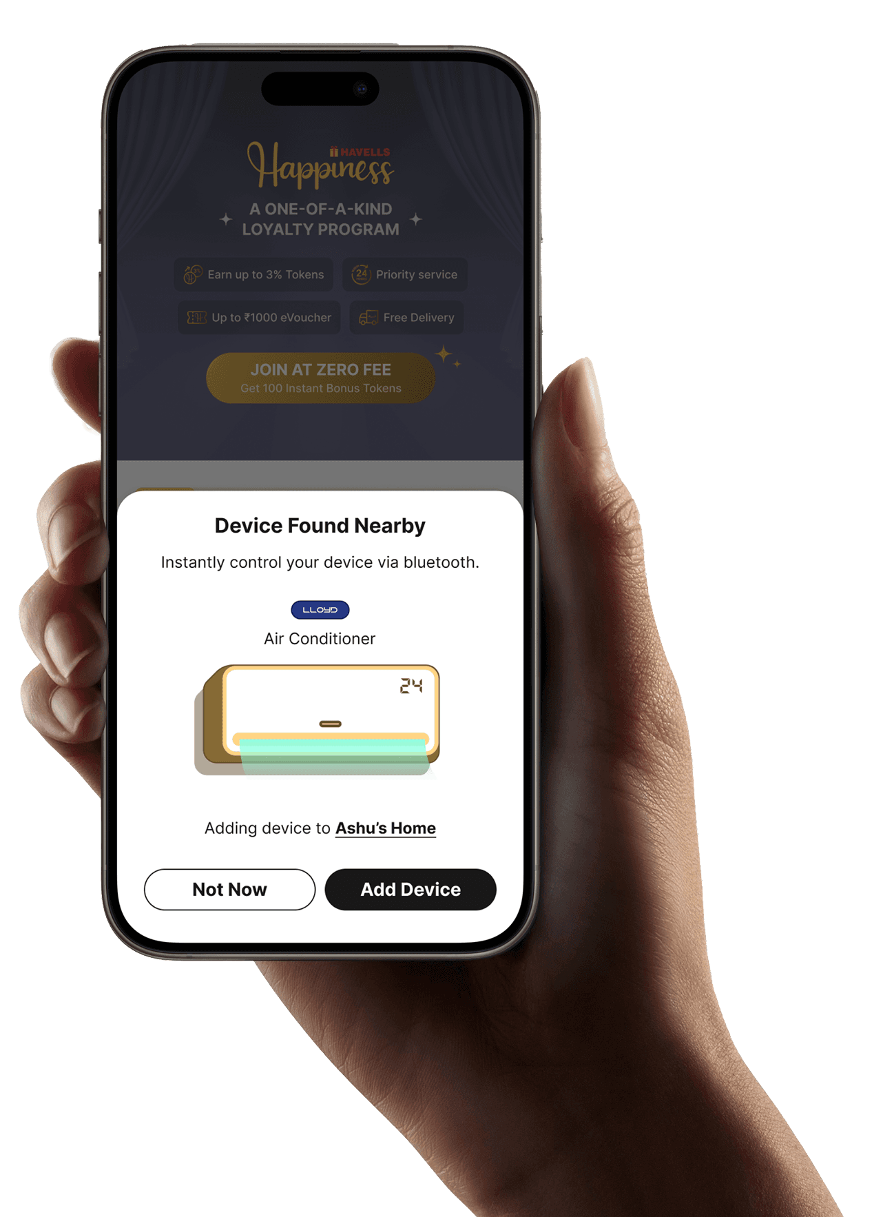 To enable fast onboarding, we designed the system to auto-detect nearby Havells devices over BLE and surface them immediately. The trade-off is that proximity-based discovery isn't perfectly selective, a fan might surface before the air purifier the user actually wants to connect.