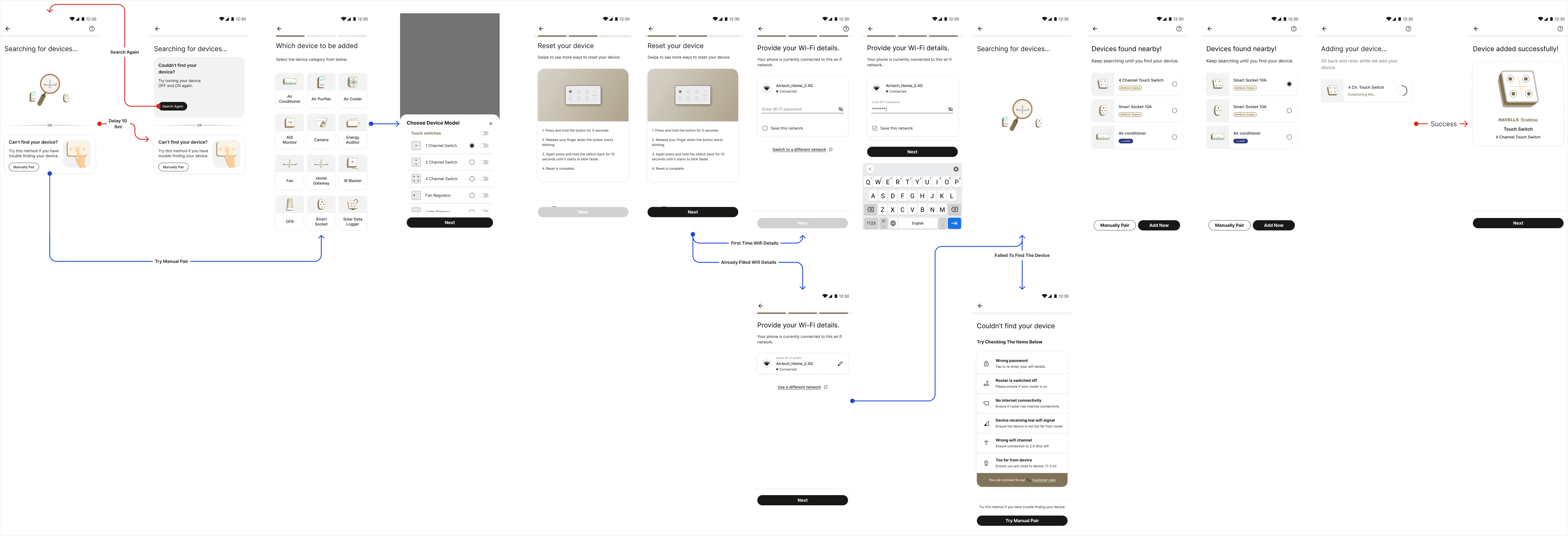 The original Havells One smart device onboarding required multiple manual steps, device selection, and reset step configuration, leading to friction during first-time setup. This complexity increased drop-offs, delayed time-to-value, and made the experience feel unintuitive, especially for users expecting quick, seamless control of their devices.